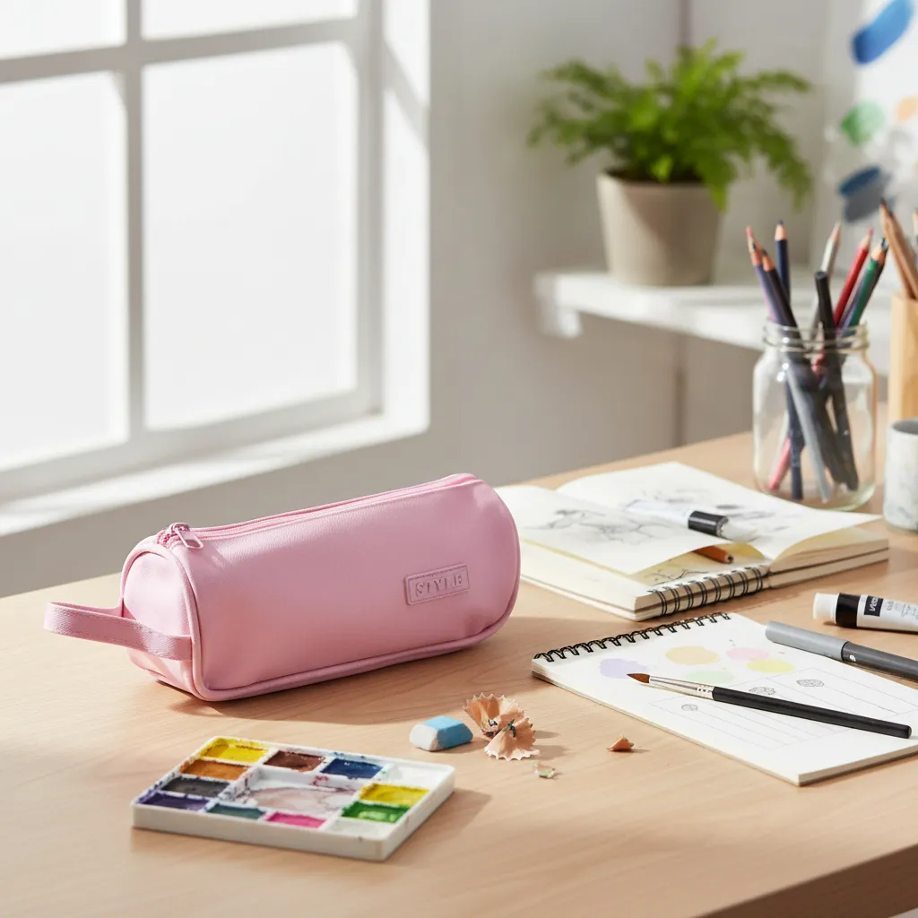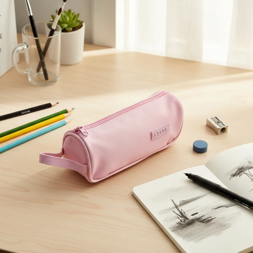 Cartuchera Lisa Con Colgante Para Útiles Rosa
