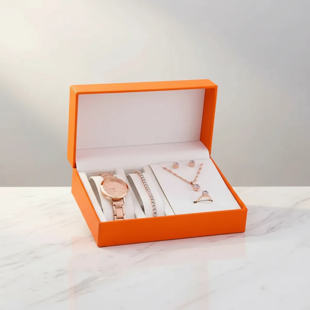 Set de regalo elegante y completo, ideal para sorprender en el Día de la Madre o cualquier ocasión especial. Una combinación perfecta de accesorios que aportan estilo y delicadeza en cada detalle.